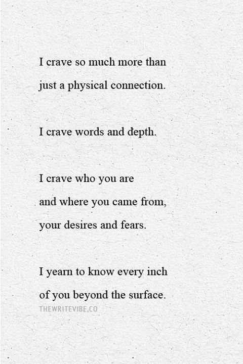 I crave intimacy from all people. I have always been willing to give myself to others emotionally, wanting to share who I am in hopes of learning, in return, who they are. For me, beauty is in the totality of someone, not just their parts. I believe that the more you know someone, the easier it is to love them, because you can see how they wind their way through the world. The sad part for me is how not everyone feels comfortable sharing those parts of themselves. I both understand and lament this fact.