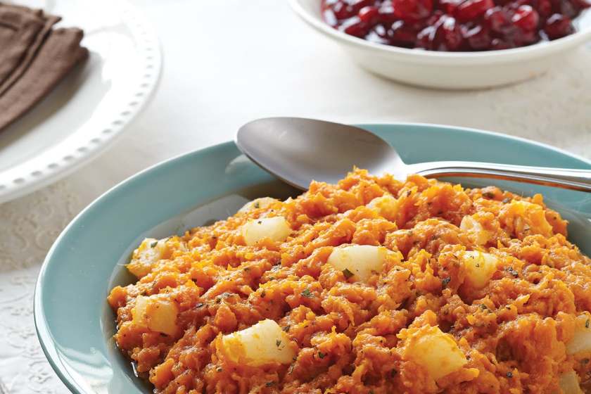 Mashed Sweet Potatoes with Pears, Sage & Browned Butter