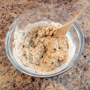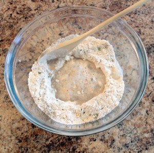 Then it’s as simple as combining all the dry ingredients and adding water. I started off with a half cup of water but had to double it to get the right consistency, so it’s okay to tweak it a bit. It’s just water anyway. But you want the batter to be thick: it shouldn’t be pourable.