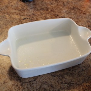 The next step is to sandwich the Neufchâtel cheese between two layers of carrot mixture, so I pressed half of the mixture into a baking dish prepared with cooking spray. Then gently add the remainder of the carrot mixture on top and pat down gently and evenly. It should look like this:
